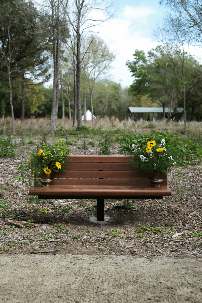 Across the site, benches become portals of rest. Spaces to pause, to write messages to ancestors, and to leave offerings at Ann Taylor’s gravesite. Walking meditation and prairie planting extended remembrance into the land.